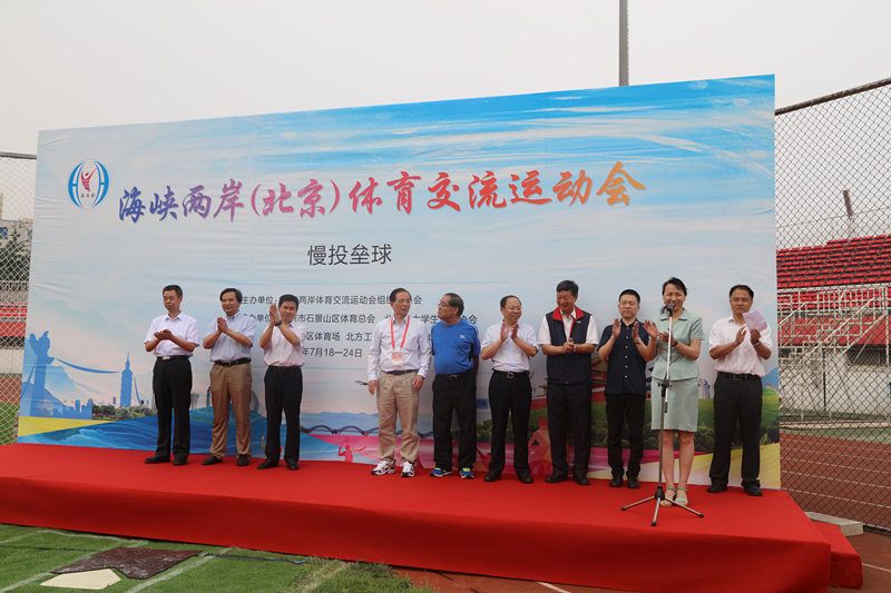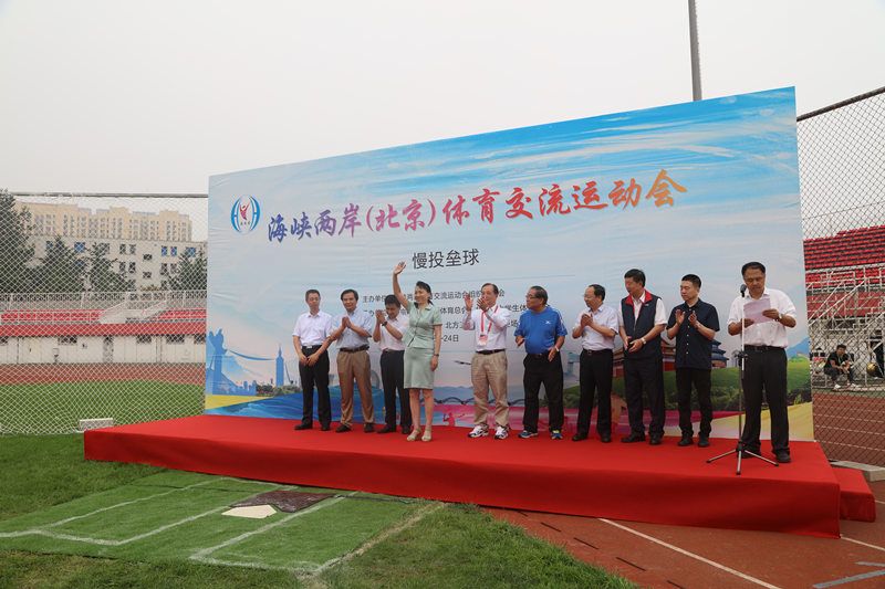 国台办交流局副局长董碧幽出席开幕式并宣布比赛开幕,并与石景山区副区长左小兵、海峡两岸体育交流运动会组委会台方主席吴清基先生、北京市大学生体育协会棒垒球分会主席、北方工业大学王建稳副校长共同为比赛开球。