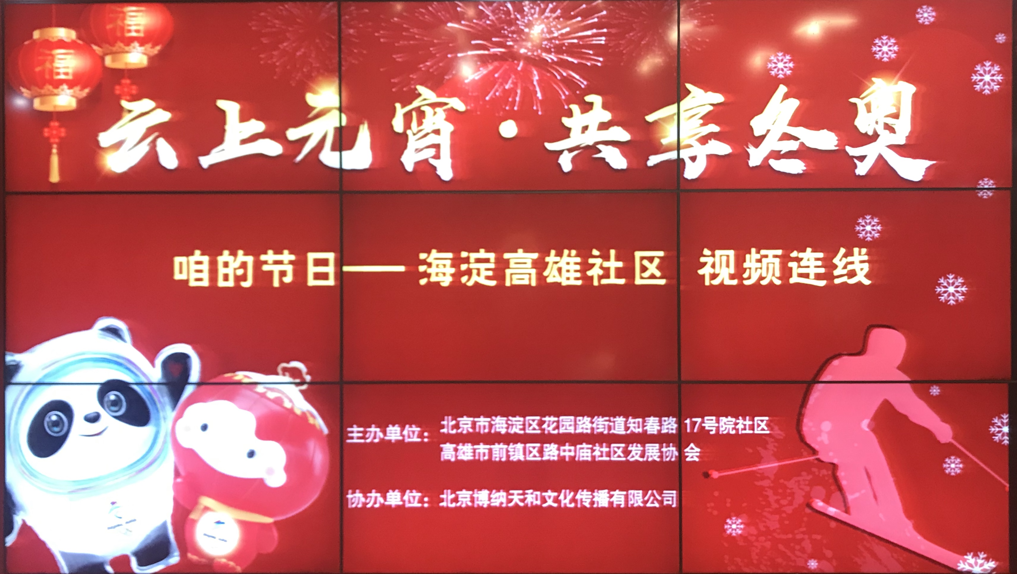 元宵佳节之际,恰逢北京冬奥。2月15日,云上元宵 共享冬奥——咱的节日·海淀高雄社区视频连线活动,在海淀区花园路街道和高雄市新兴区同步举办。花园路街道社区工作者、居民代表、台湾青年冬奥城市志愿者代表和高雄市社区居民“云端”互致新春祝福、共享冬奥盛会、共庆元宵佳节。