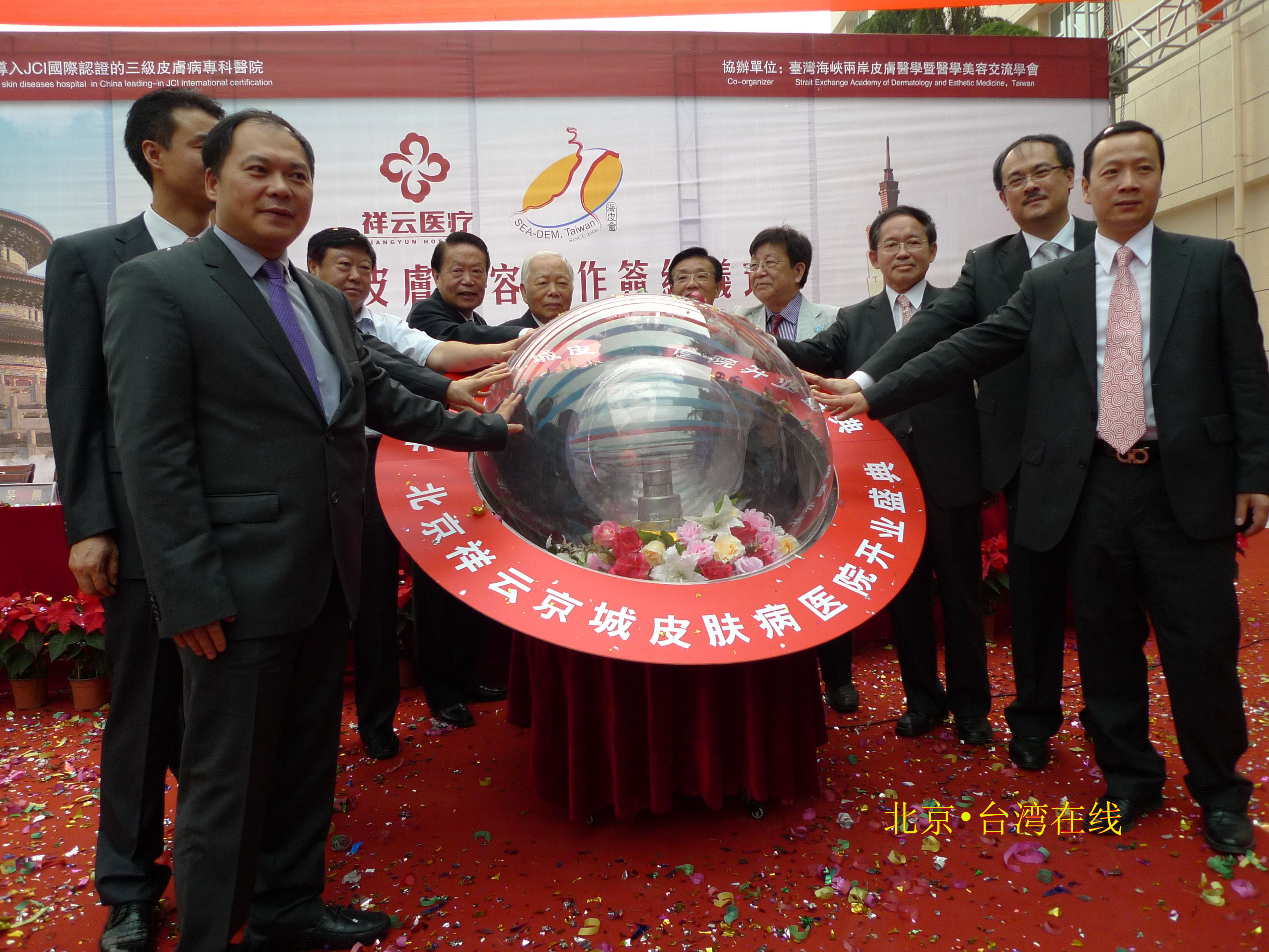 北京祥云京城皮肤病医院与海峡两岸皮肤医学暨医学美容交流学会签订《海峡两岸皮肤美容合作协议》,并宣布成立海峡两岸皮肤医学暨医学美容专家委员会。委员会将依托祥云京城皮肤病医院,为造福两岸患者的疑难病提供远程会诊系统。
