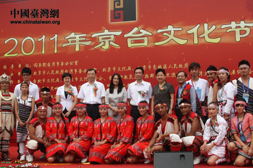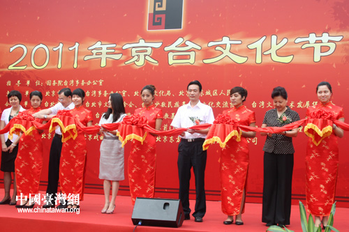今日上午,以“交流?融合”为主题的2011年京台文化节在北京前门台湾商务区开幕。国台办交流局副局长严中洲、北京市台办主任马玉萍、中共北京西城区委书记杨柳荫、北京市文化局副局长关宇、北京市台办副主任黄塞溪以及台湾少数民族知名人士高金素梅等出席了开幕式。