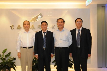 与京泰公司座谈(左一 区委常委、统战部长邵鹏 左二为京泰集团总经理雷振刚 左三区政协主席徐鸿达 左四京泰公司副总杜建斌)
