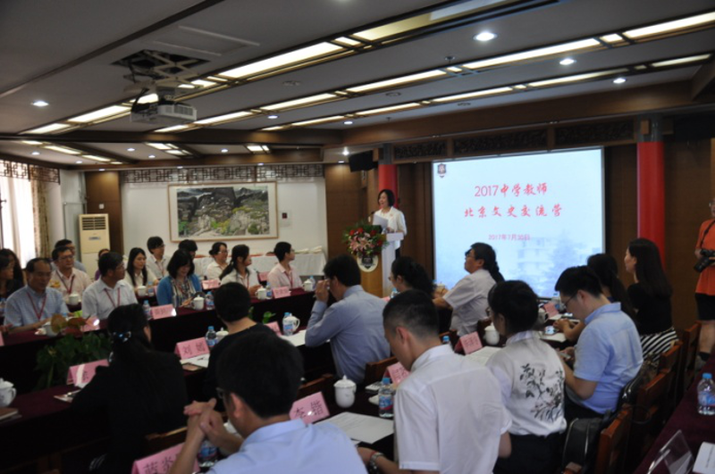7月30日下午,由台湾新党主席郁慕明率领的2017中学教师北京文史交流营一行23人到北京四中参访并座谈,座谈会由西城区台办主任赵玲主持。国台办海峡两岸交流中心副主任苗京平、市台办联络处处长李岳震、交流二处处长金秀清、西城区教工委书记助理徐艳、区台办主任助理刘嫣参加座谈交流活动。赵玲主任在座谈会上向台湾来宾介绍了西城区整体情况和对台交流交往的情况。