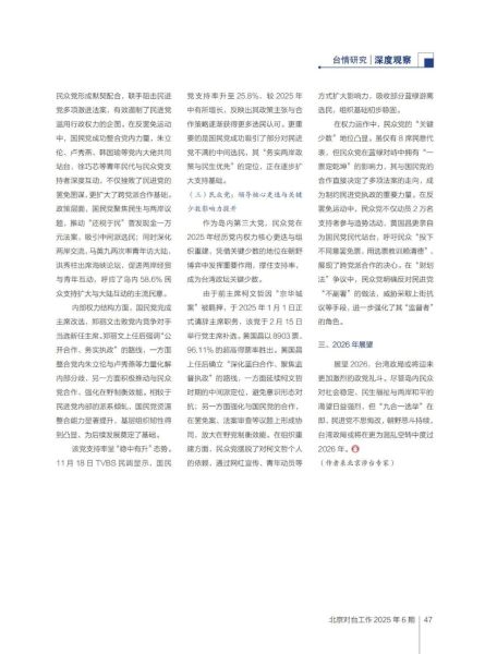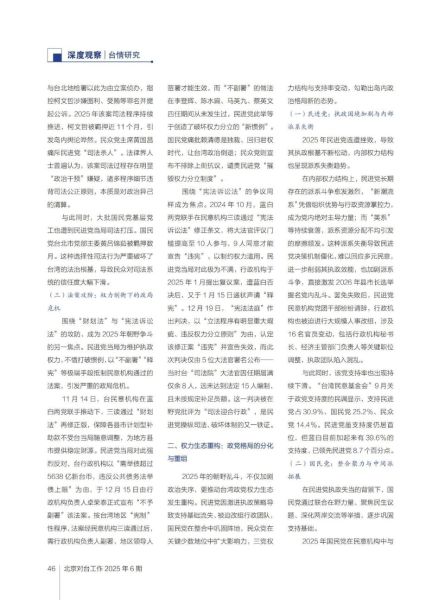 2025年民进党连遭挫败,导致其执政根基不断松动,内部权力结构也呈现派系失衡趋势。