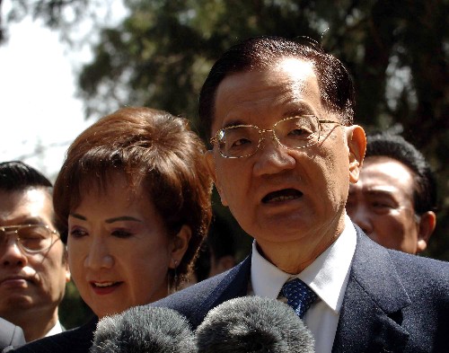 4月15日,中国国民党荣誉主席连战一行抵达北京香山碧云寺,参观孙中山纪念堂并拜谒孙中山先生衣冠冢。这是连战在香山碧云寺植树后发表讲话。 新华社记者王建华摄