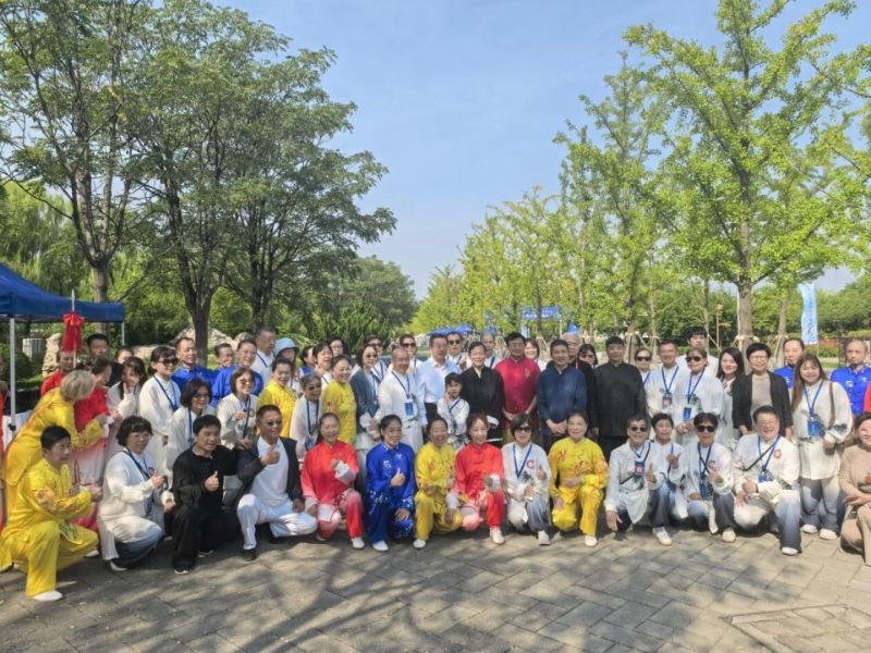 在开幕式上,台湾同胞上台表演《太极归来》,舒展的招式、轻盈的步伐、行云流水的动作,诠释了太极拳刚柔相济、绵延不断的精髓。太极名家见面会期间,台湾同胞与太极拳爱好者面对面交流、手把手教学指导,共同感受太极韵味与魅力,共同书写新时代太极文化新篇章。台湾同胞与太极拳相关协会、太极拳研究学者、家庭代表等深入对话研讨,共同分享技艺传承与创新、推广传播路径及文脉延续故事。丰台武协30余人与台湾同胞在北京园博园展演现场共同展示了精彩的太极拳、太极扇、太极棍等武术表演,同台表演了太极拳《八法五步》,共同传承和发扬中华武术。
