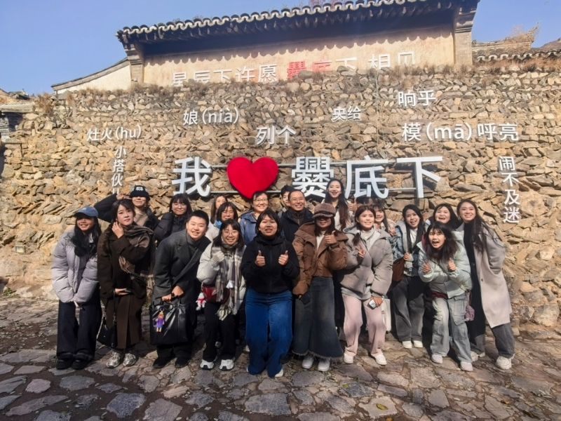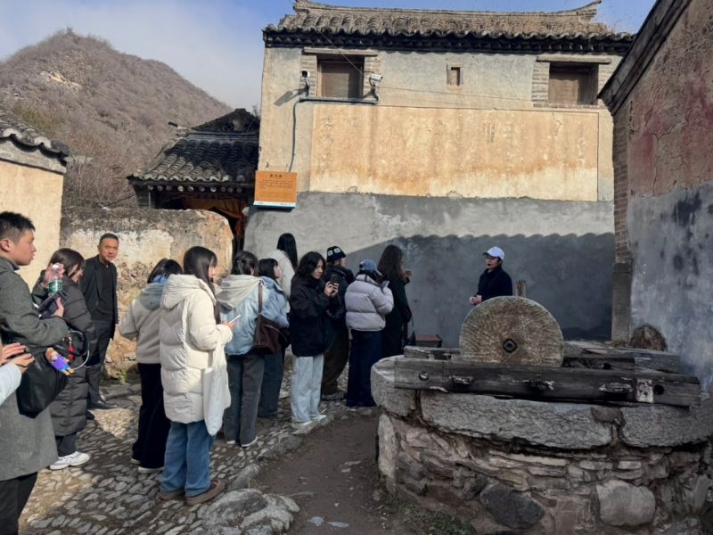 爨底下村被誉为北京最美古村,保存着完好的明清古宅。走进爨底下村,台生们被层层叠叠的青砖灰瓦老民居所吸引,纷纷赞叹古村的壮观。在讲解员指引下,台生一行参观了明清四合院建筑群,了解了“爨字文化”及“金元宝”村落布局,欣赏了剪纸、刺绣、泥塑等传统手工艺,近距离体验了原汁原味的古村人文和乡土气息。