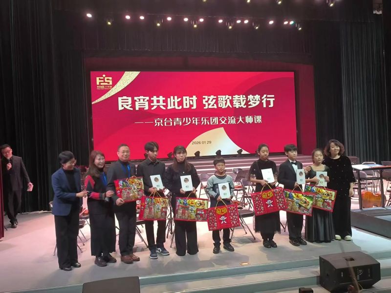 随后,在北京音乐厅两岸青少年联手开展“弦音传情、同心筑梦——京台青少年管弦乐文化交流盛典”,台湾乐团演奏了《第五交响曲》第四乐章、《龙腾贺岁》,并携手丰台区少年宫小星星弦乐团共同演绎《良宵》,音乐会在《友谊地久天长》的悠扬旋律下落下帷幕,以管弦合奏传递跨越海峡的情感共鸣,用经典曲目呼应两岸文化同源之美,这是一次富有深意的艺术合作,也是一场凝结友谊的联合演出,更是两岸美育互鉴的生动实践,通过这次和谐友好的艺术交流,进一步加深了两岸同胞同根同源、同文同乐的血脉亲情。