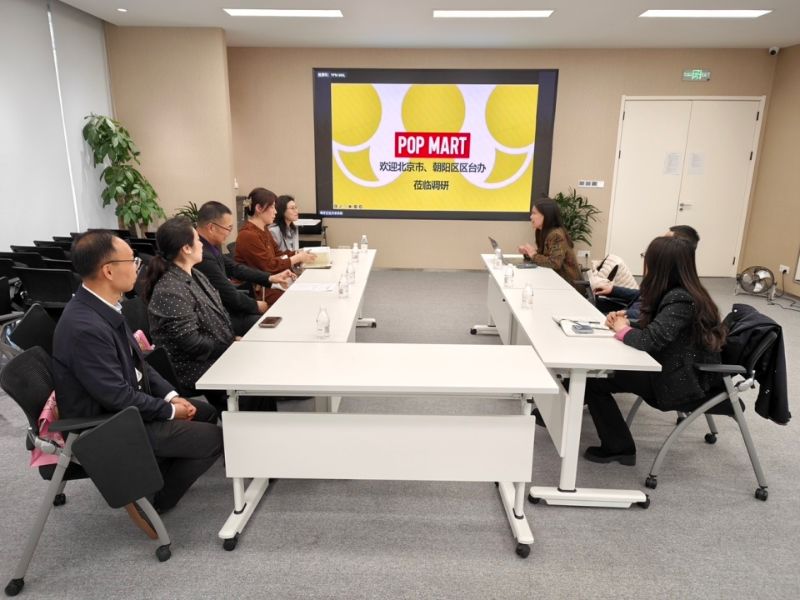 4月2日下午,北京市台办副主任、一级巡视员刘先传到北京泡泡玛特文化创意有限公司调研走访,与企业主要负责人和赴台人员进行座谈,了解企业发展和对台交流情况,为企业送政策送服务。北京市涉台服务中心主任常虹、朝阳区台办主任李波、泡泡玛特国际集团公共事务部经理高宇等参加调研。