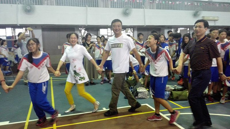 孙启芳里长邀请参访团一行参观他的母校——旗津中学。一到学校礼堂,大家就被同学们的热情感染了。学校正在举办端午联欢活动,两位女生用闽南语为大家表演了相声。虽然我们听不懂闽南语,但是也被她们夸张的表情逗得哈哈大笑。