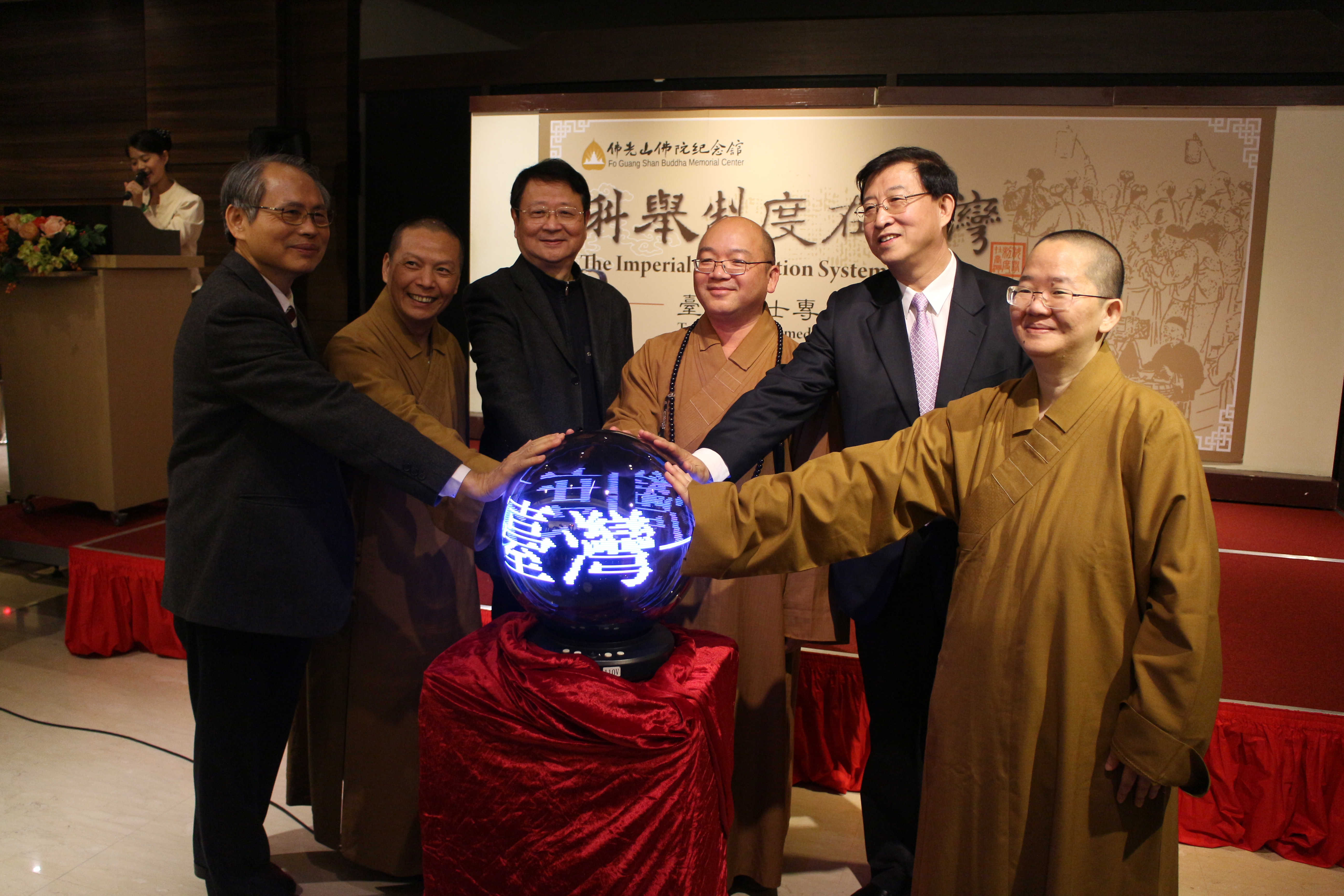 全国台联会长汪毅夫、北京市台联党组书记王兰栋、副会长郑大,佛光山住持心保法师、佛光山佛陀纪念馆馆长如常法师、金马台澎两岸交流协会会长的苏进强共同为为展览开启启动光球。