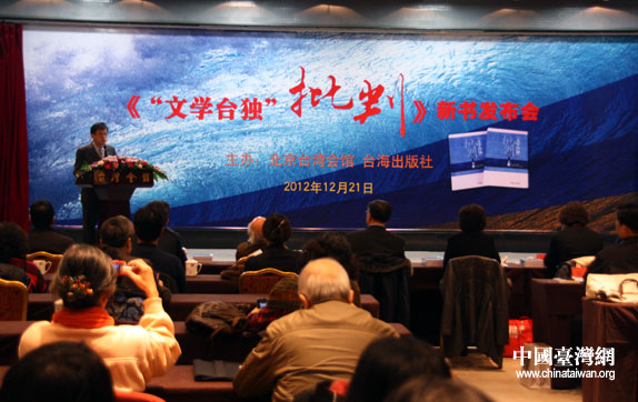 中国台湾网12月24日北京消息 《“文学台独”批判》(增订本)新书发布会12月21日在北京台湾会馆举行。国台办新闻局副局长范丽青等有关方面领导、来自海峡两岸的专家学者和新闻界人士近70人出席。