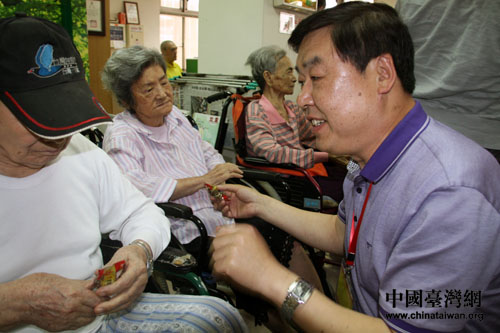 中国台湾网5月16日嘉义消息 昨天,京味文化之旅交流团一行21人走进了台湾中南部的疗养院、育幼院,将京味文化艺术、将关怀与笑声带给老人和孩子,让台湾同胞真正体会到文化的魅力、感受到文化的关怀。
